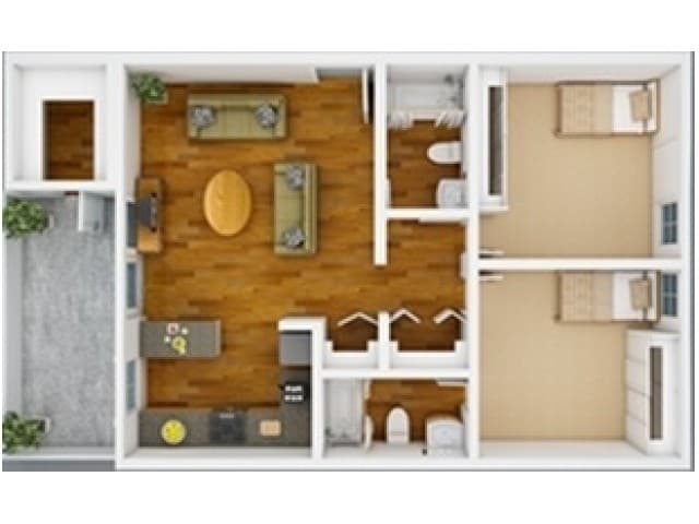 Apartment Model: 2 Bed, 2 Bath Private2 Bedroom, 2 Bath, 965 sq ftUnavailable![]()
