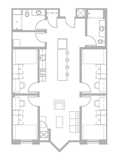 D1 Alt1 - 4x2 - Floorplan 1 Apartment Unit: Double Occupancy Shared BedroomApartment Model: D1 Alt1 - 4x2$9994 Bedroom, 2 Bath, 1255 sq ftAvailable August 21, 2026Apartment Unit: Private BedroomApartment Model: D1 Alt1 - 4x2$1,4994 Bedroom, 2 Bath, 1255 sq ftAvailable August 21, 2026D1 - 4x2