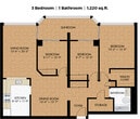 2 Bedroom 1 Bath - Floorplan 2 ![]()