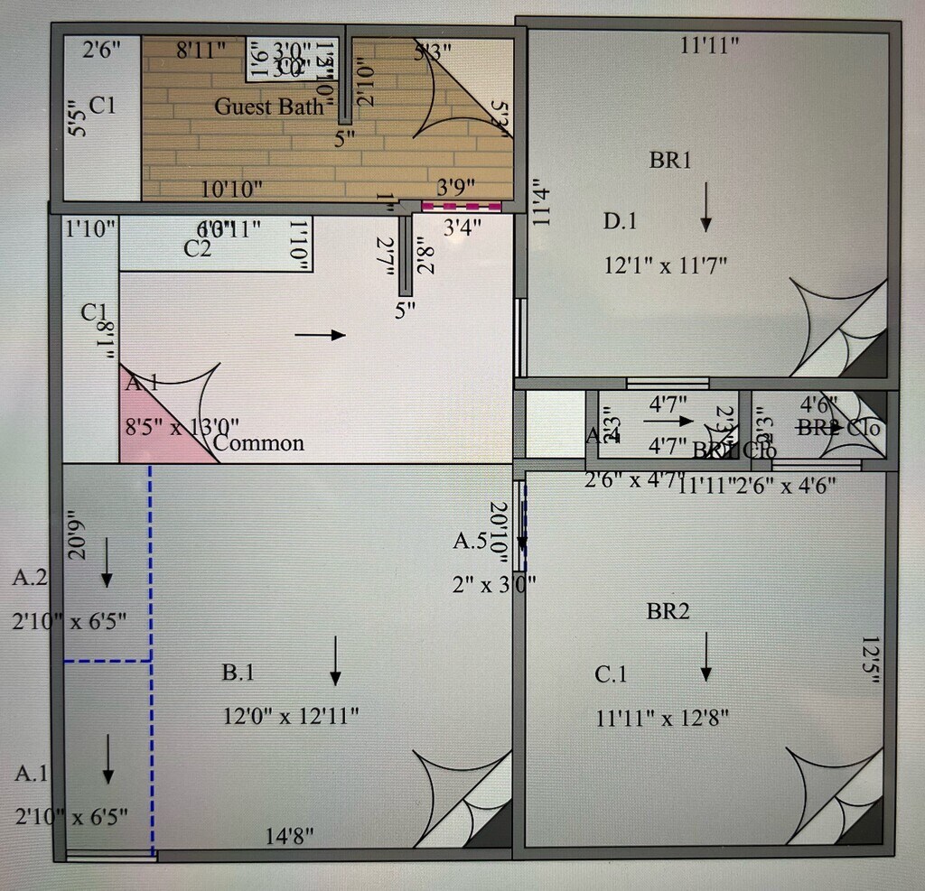 Apartment Model: 2.12 Bedroom, 1 Bath, 850 sq ftUnavailable![]()