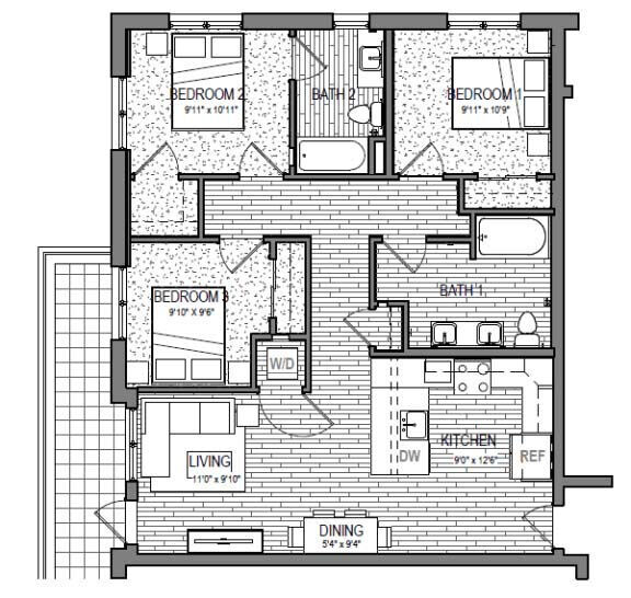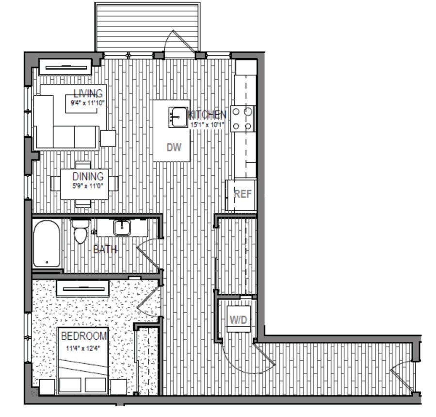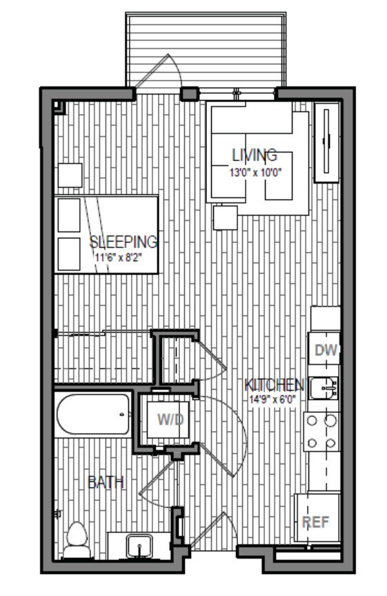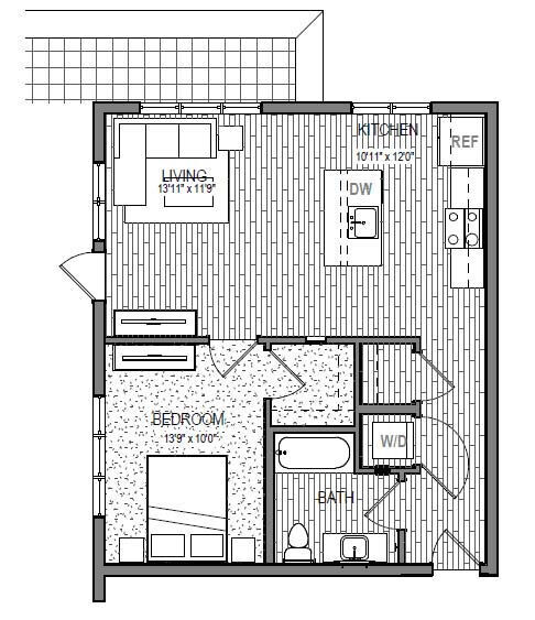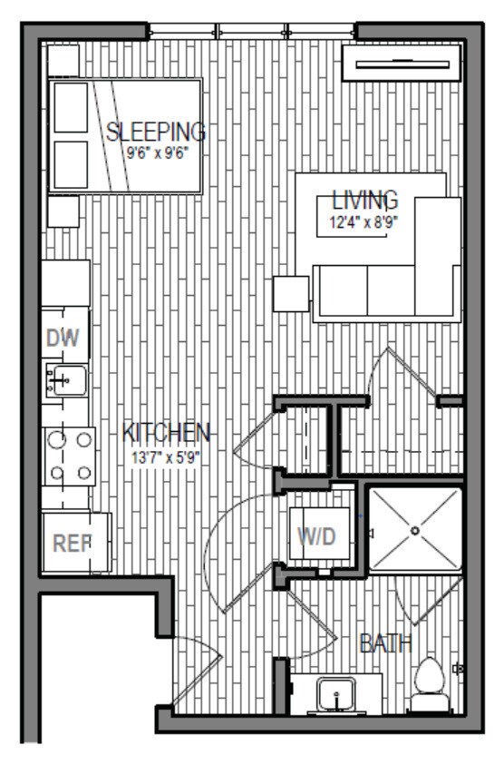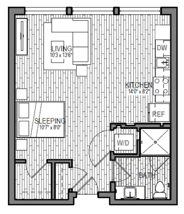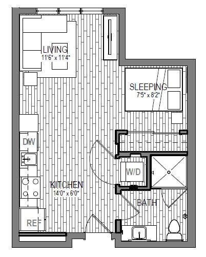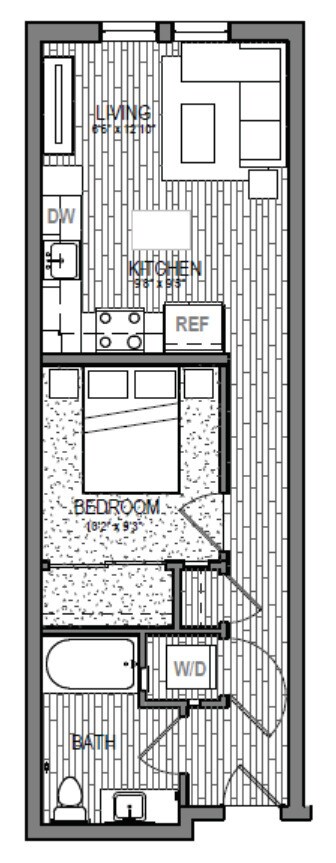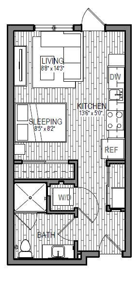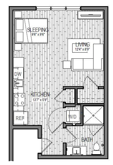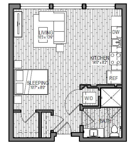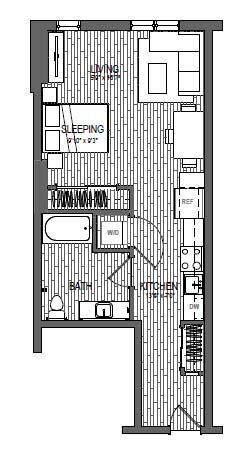 S9 - Floorplan 1 Apartment Unit: 621Apartment Model: S9Studio, 1 Bath, 599 sq ftAvailable NowFloorplan S3