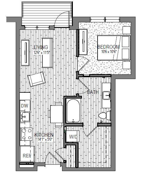 Studio, 1 Bath, 564 sq ftModel Gallery