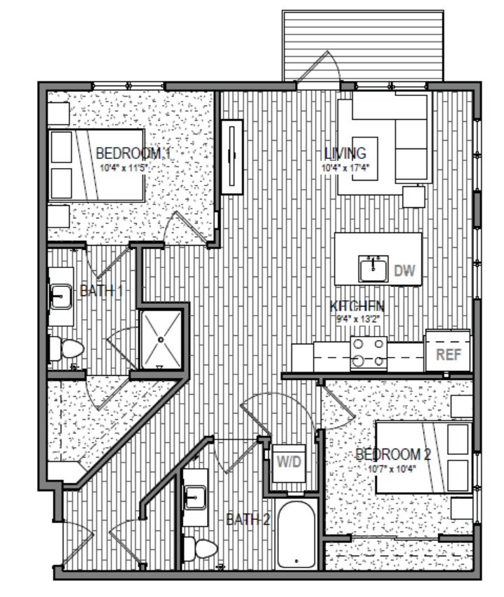 S7 - Floorplan 2 Apartment Unit: 310Apartment Model: S7Studio, 1 Bath, 443 sq ftAvailable NowS2 AFF**