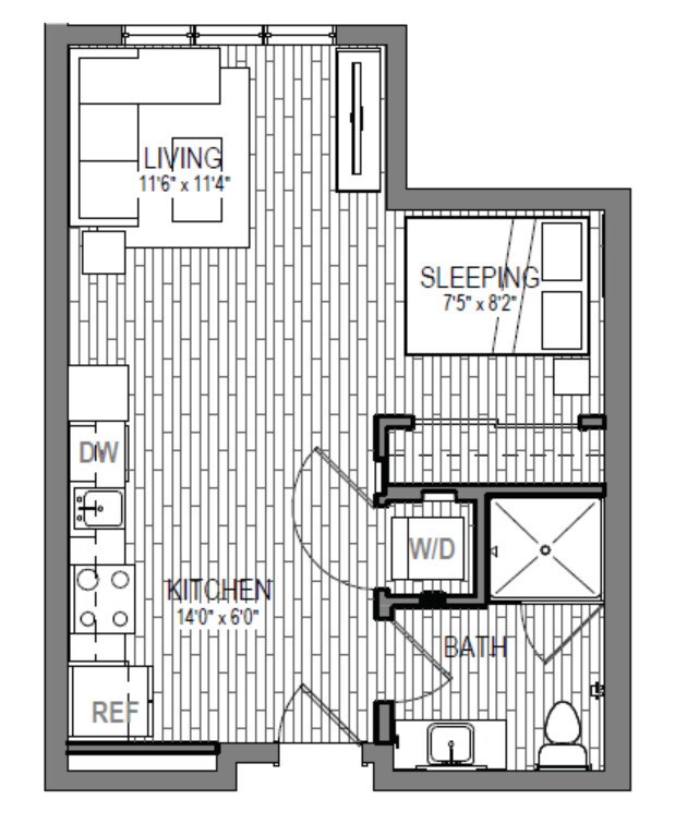 S6 - Floorplan 2 Apartment Unit: 574Apartment Model: S6Studio, 1 Bath, 604 sq ftAvailable NowFloorplan S5