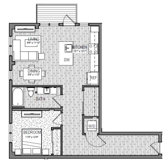 Apartment Model: A61 Bedroom, 1 Bath, 561 sq ftAvailable Now![]()