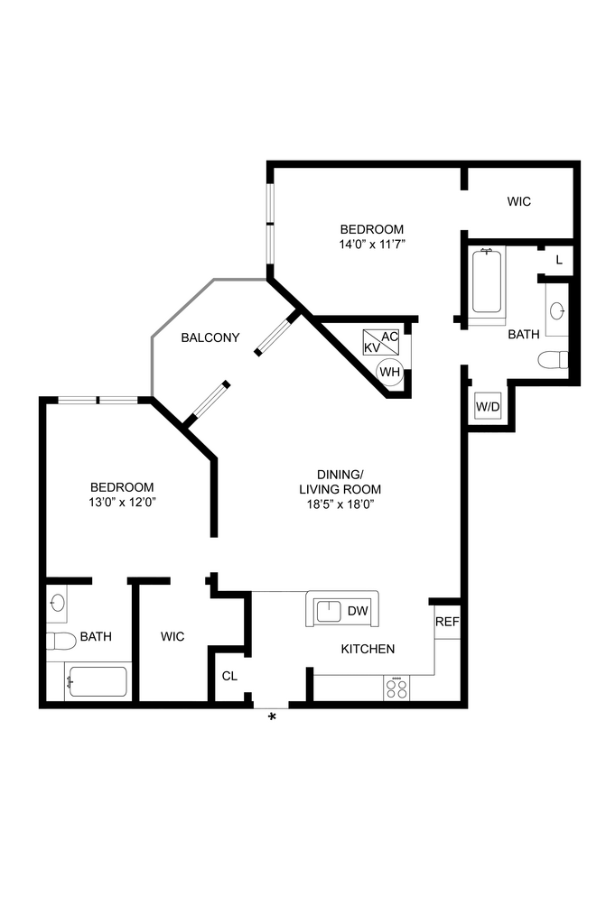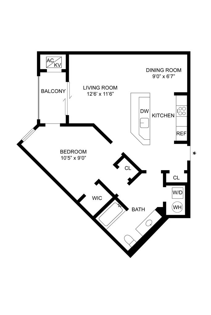 Apartment Model: A1B-A1 Bedroom, 1 Bath, 718-822 sq ftUnavailable![]()