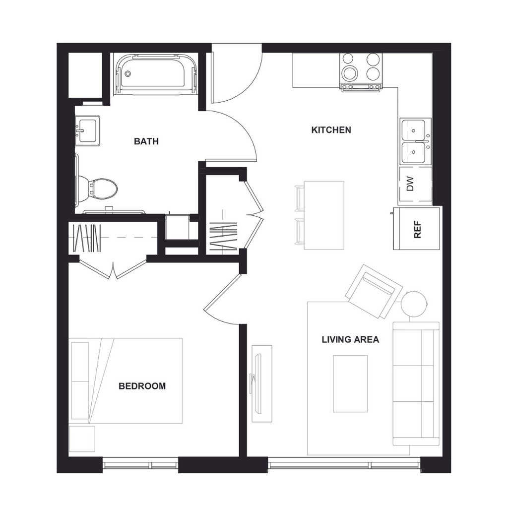 Apartment Model: A5From $1,629Studio, 1 Bath, 577 sq ftAvailable NowFloor plans are artist's rendering. All dimensions are approximate. Actual product and specifications may vary in dimension or detail. Not all features are available in every rental home. Please see a representative for details.