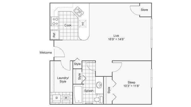 Studio, 1 Bath, 650 sq ftModel Gallery