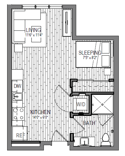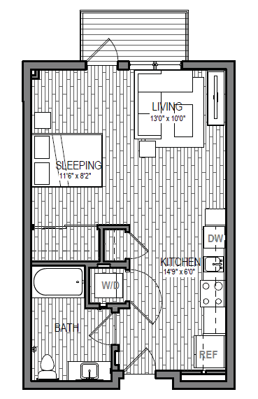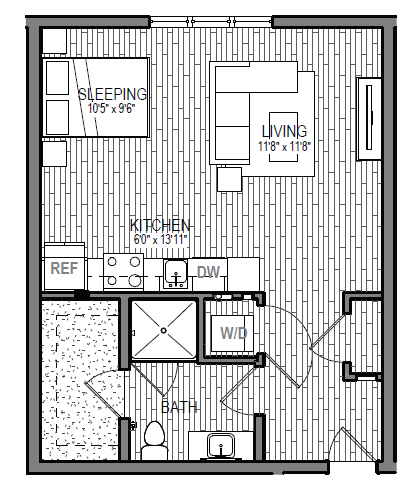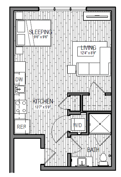 Apartment Model: Deja VuStudio, 1 Bath, 438 sq ftUnavailableDeja Vu - Floorplan 1 Delirium