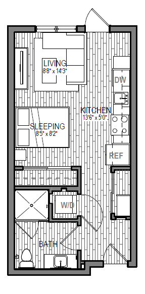 Apartment Model: ReverieStudio, 1 Bath, 564 sq ftUnavailableReverie - Floorplan 1 Euphoria B