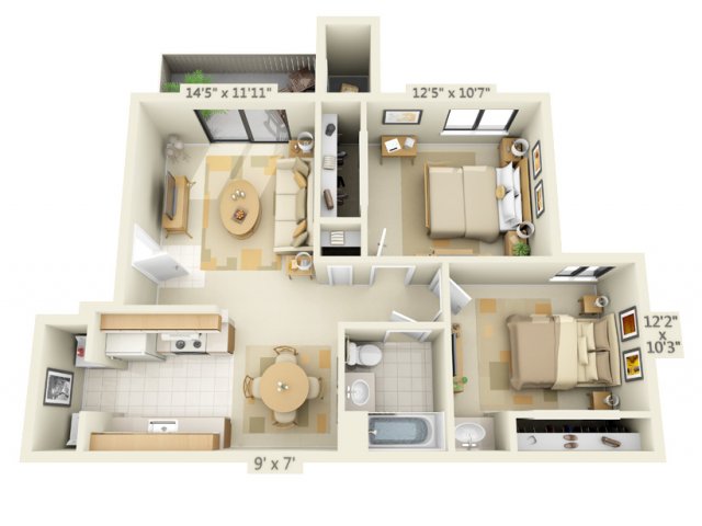 2 Beds, 2 Baths, 880 sq ftAvailable NowModel Gallery
