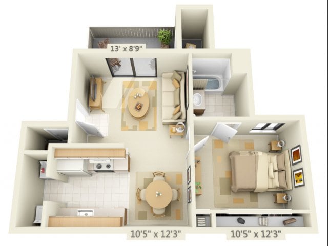 1 Bed, 1 Bath, 615 sq ftAvailable NowModel Gallery