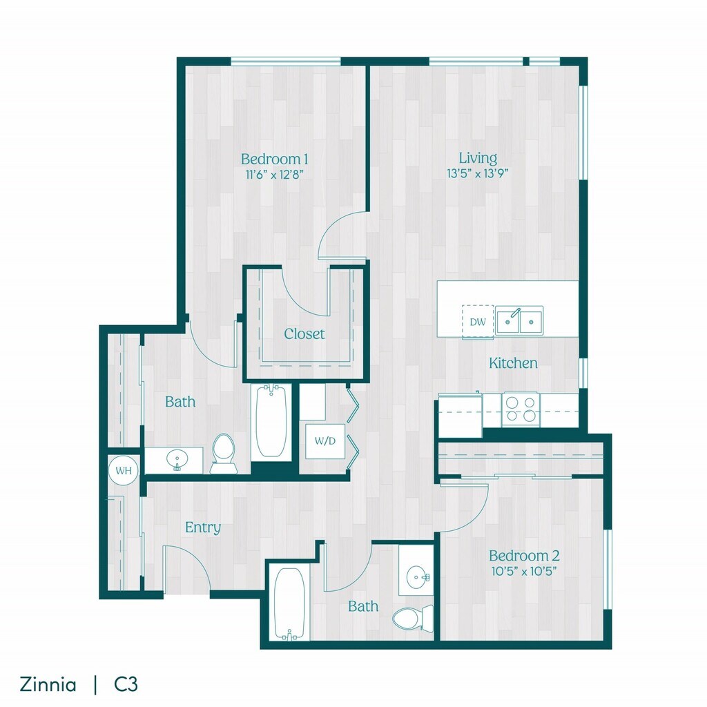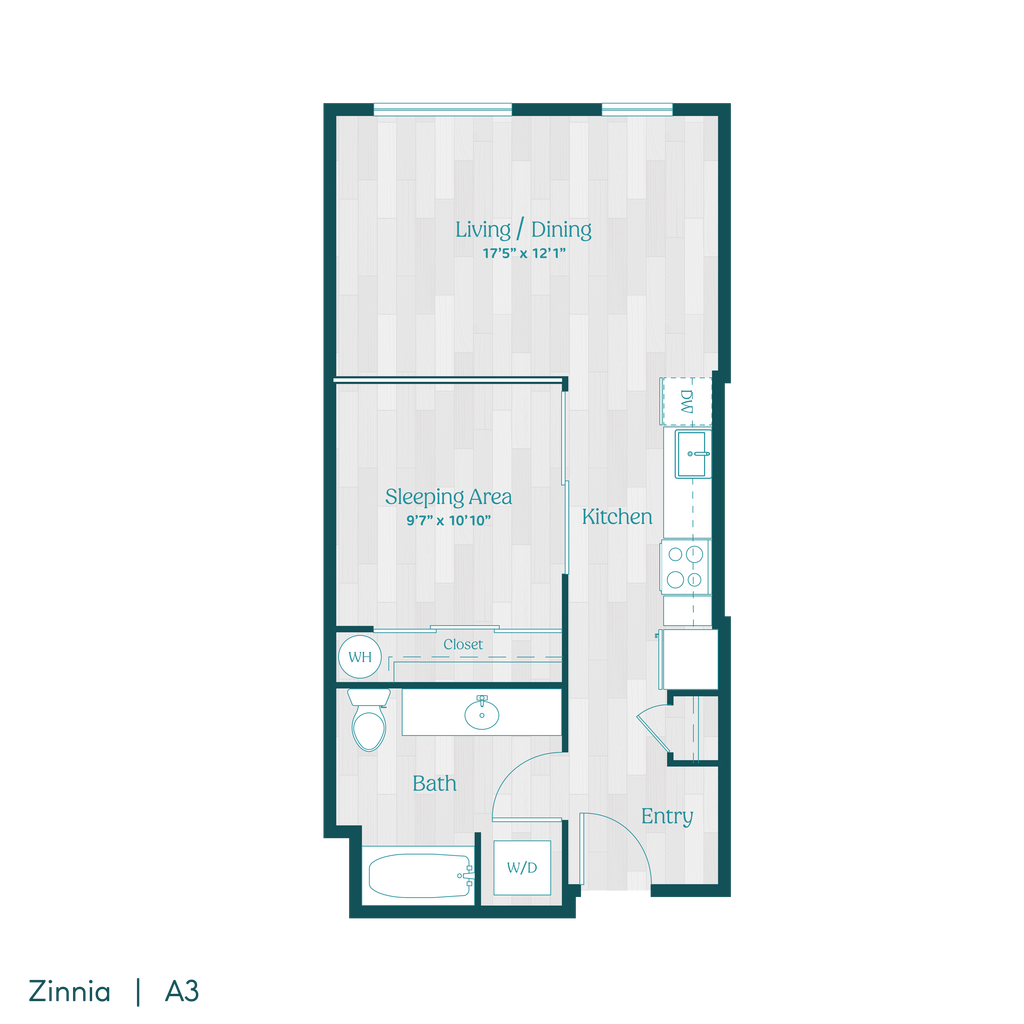 Studio to 2 Bedroom Apartments at Zinnia currently range from $1,619 to $2,968