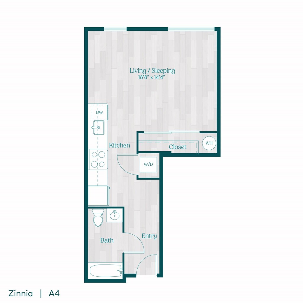 A5 - Floorplan 2 Apartment Unit: 3310Apartment Model: A5$1,718Studio, 1 Bath, 609 sq ftAvailable NowFloorplan A4