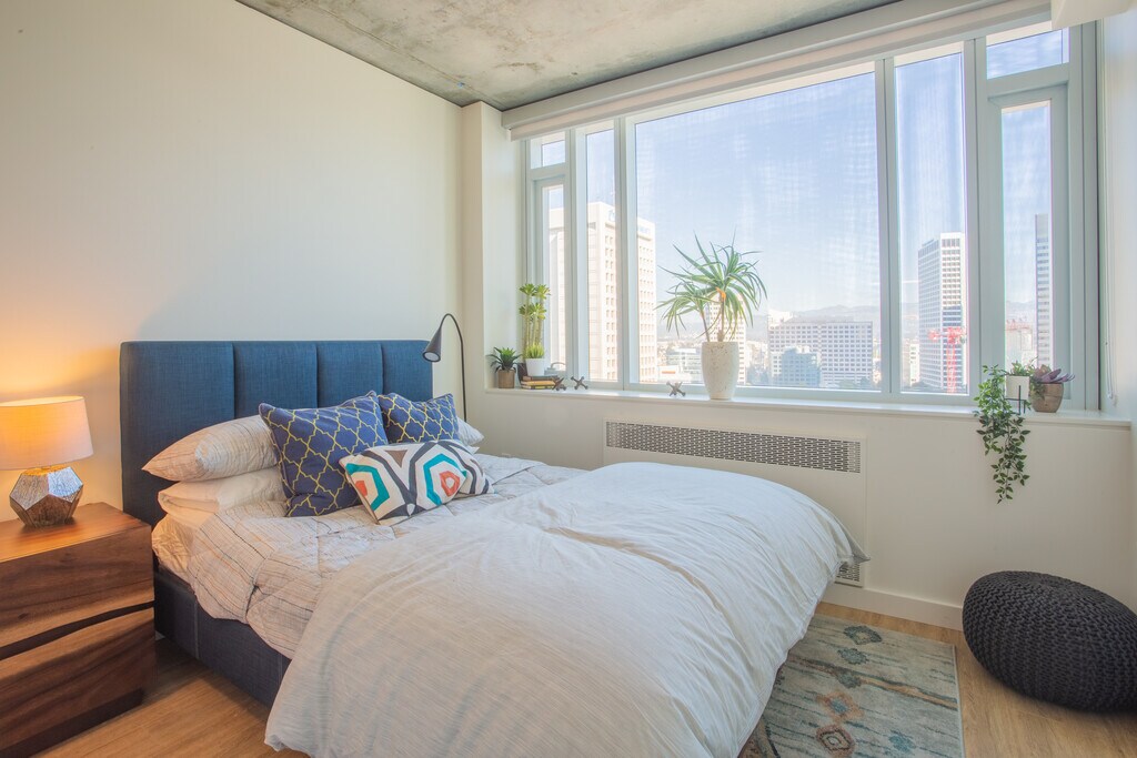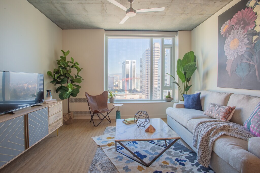 Designed to engage with the energy and excitement of Oakland, 17th & Broadways contemporary apartments offer unprecedented lifestyle amenities for endless comfort and convenience. Relax on the outdoor pool terrace by day, then gather with friends at the 34th-floor, open-air lounge for a phenomenal view of the citys skyline.
