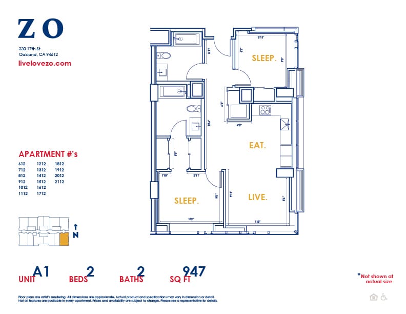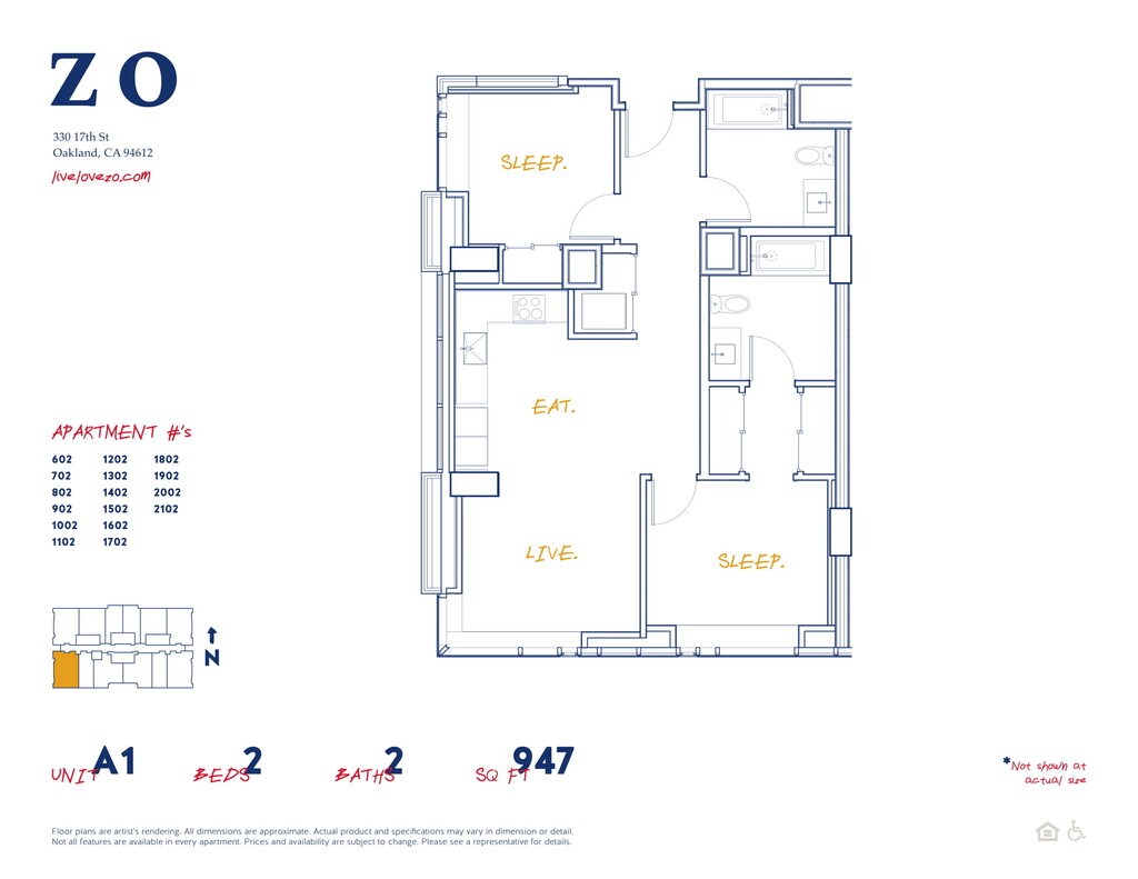 Zo offers Studio to 2 Bedroom apartments starting from $2,024 and having 492–947 sq ft. Here is the current pricing and availability: