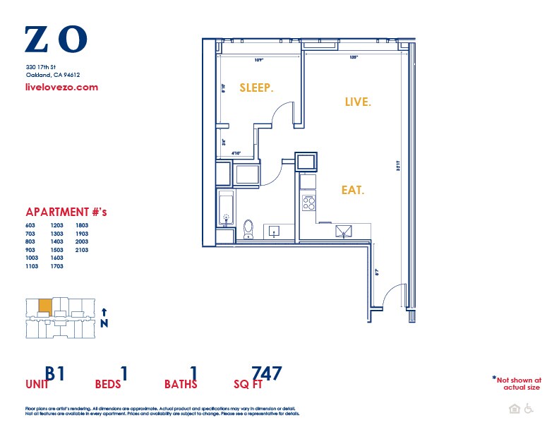 B1 - Floorplan 5 Apartment Unit: 0603Apartment Model: B1$2,5721 Bedroom, 1 Bath, 747 sq ftAvailable NowFloorplan B1A