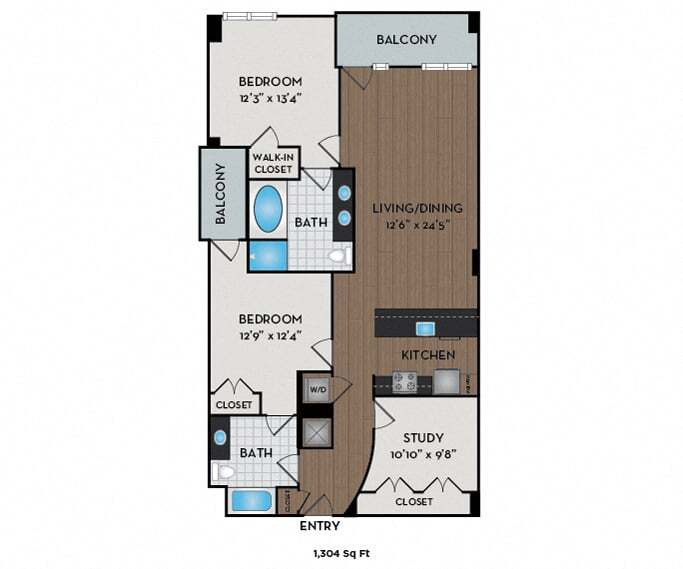 11F1 - Floorplan 5 Apartment Unit: 513Apartment Model: 11F1$2,6401 Bedroom, 1 Bath, 544 sq ftAvailable Now![]()