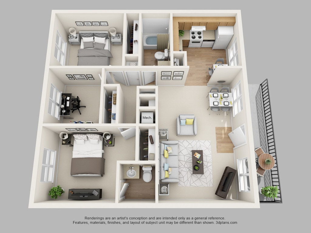 Apartment Model: Three BedroomFrom $1,9653 Bedroom, 1.5 Bath, 920 sq ftAvailable NowFloor plans are artist's rendering. All dimensions are approximate. Actual product and specifications may vary in dimension or detail. Not all features are available in every rental home. Please see a representative for details.
