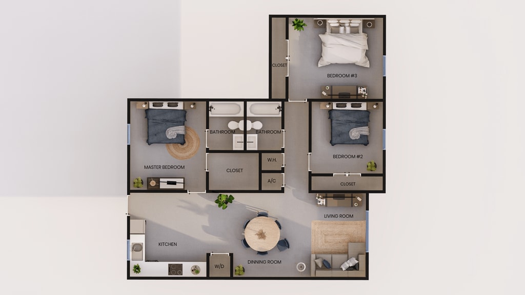 3 Beds, 2 Baths, 1112 sq ftAvailable NowModel Gallery