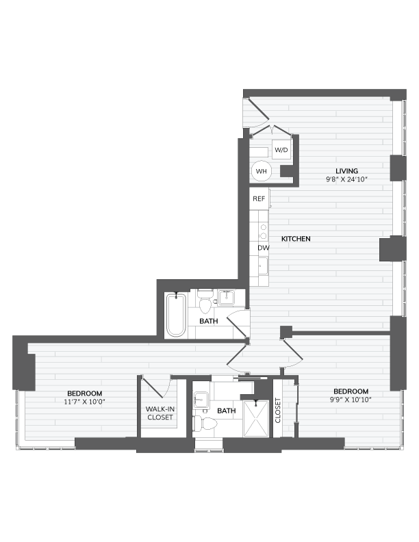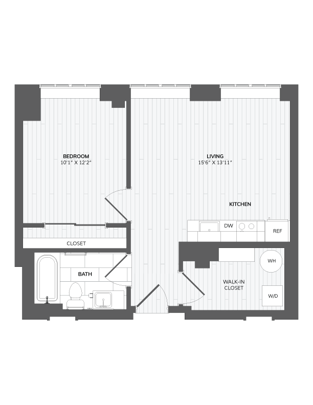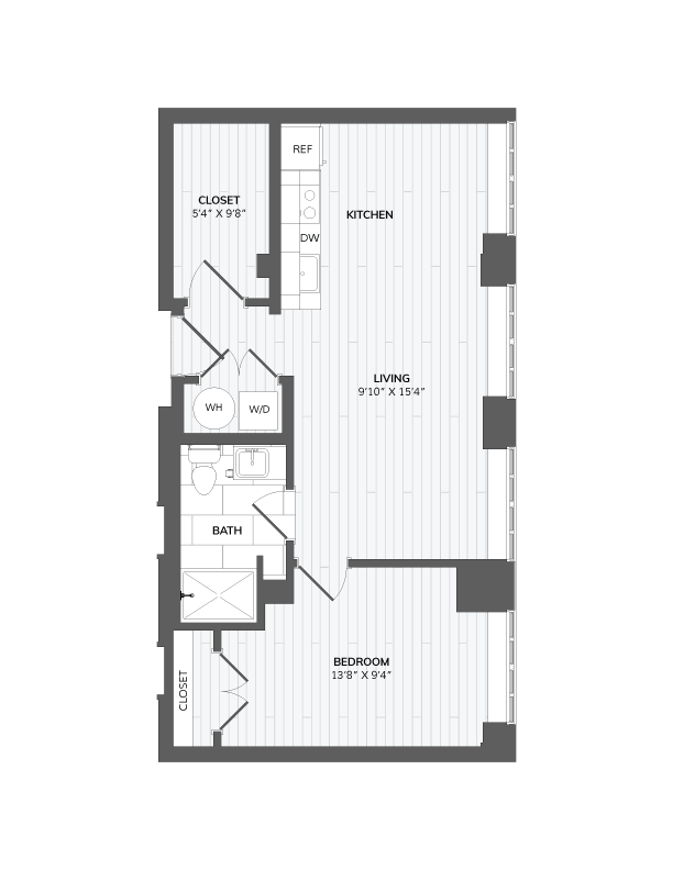 Apartment Model: 1 Bed 1 Bath-B1 Type AFrom $2,2551 Bedroom, 1 Bath, 588 sq ftAvailable Now![]()