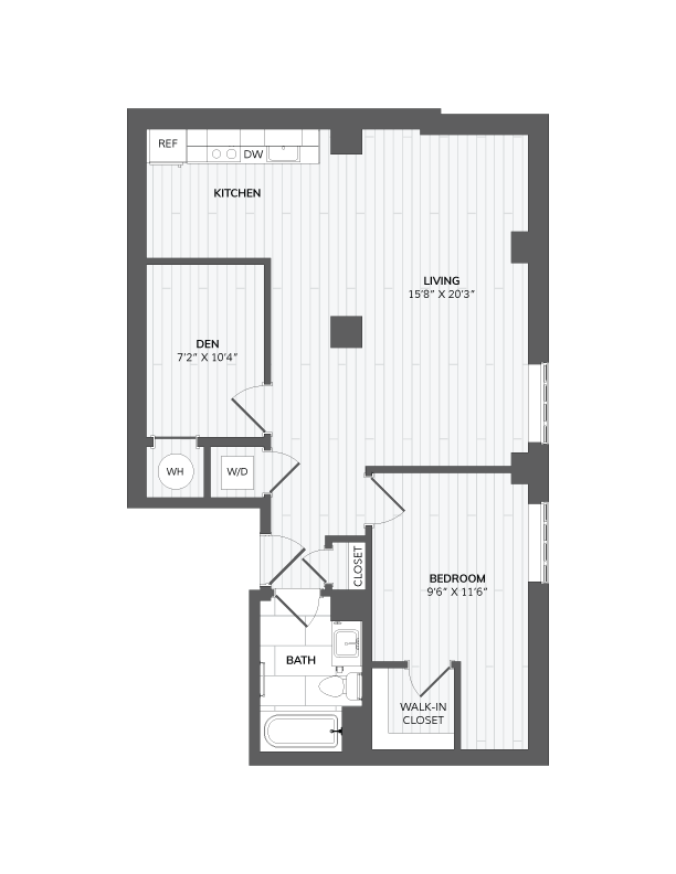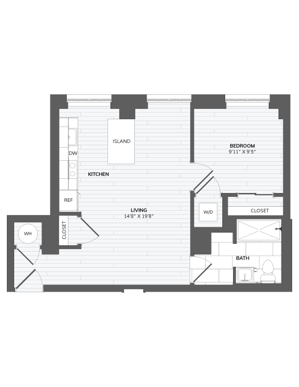 1 Bed, 1 Bath, 584 sq ftAvailable NowModel Gallery