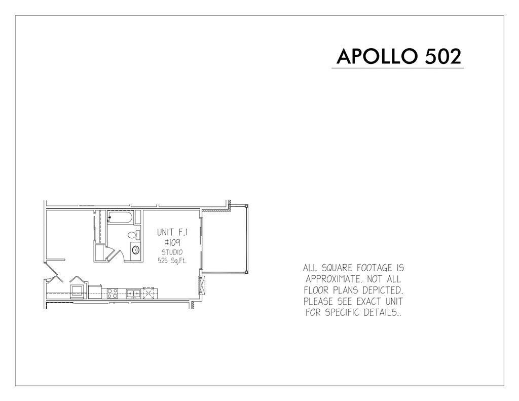 Apartment Model: E$1,300Studio, 1 Bath, 621 sq ftAvailable November 1, 2025![]() - E - Floorplan 1 Apartment Unit: 336Apartment Model: E$1,300Studio, 1 Bath, 621 sq ftAvailable November 1, 2025- Floorplan F1Studio, 1 Bath, 525 sq ft- Model Gallery- Floorplans- Availability Details- Availability Date - Unit - Sq Ft - Call for Availability - F1 - 525 sq ft - Model Amenities and Features- Features- Air Conditioning