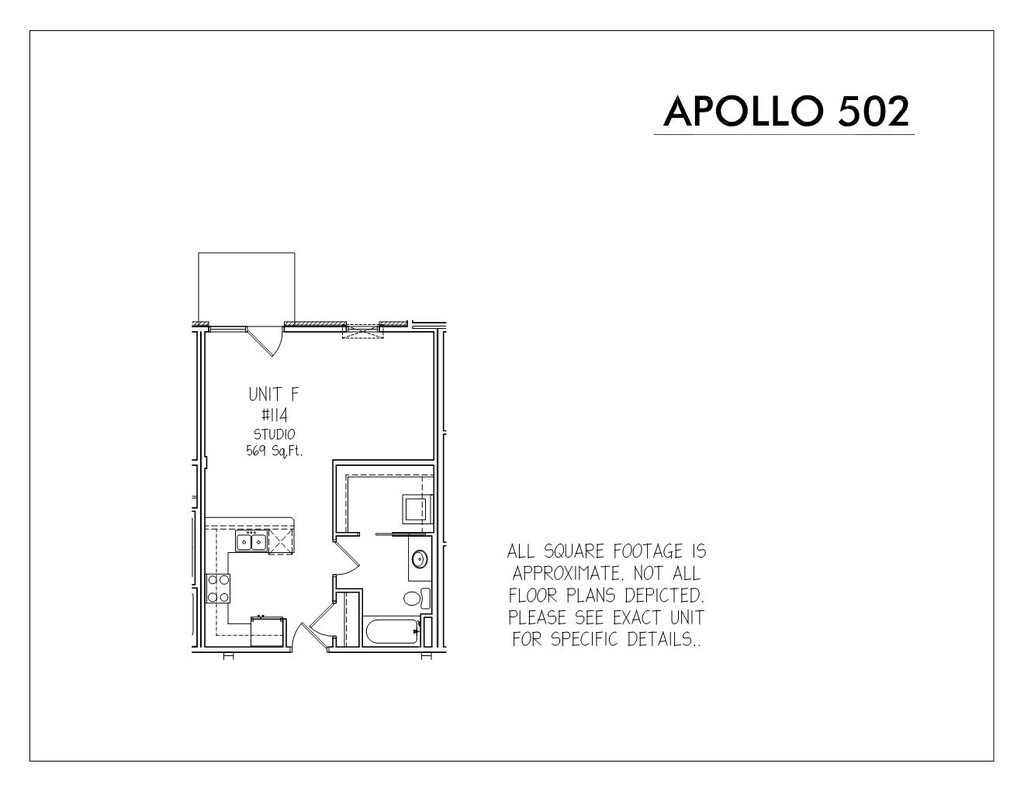 Apartment Model: FCall For RatesStudio, 1 Bath, 569 sq ftUnavailable![]() - F - Floorplan 1