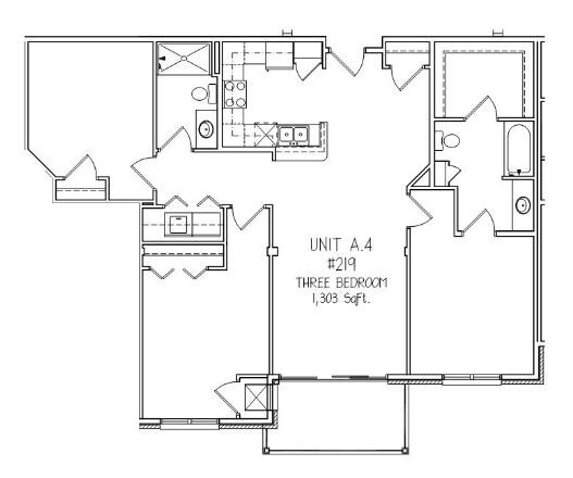 - 3 Bedrooms- A4+Bonus3 Beds, 2 Baths, 1303 sq ft- Model Gallery- Floorplans- Availability Details- Availability Date - Unit - Sq Ft - Call for Availability - A4+Bonus - 1303 sq ft - Model Amenities and Features- Features- Air Conditioning