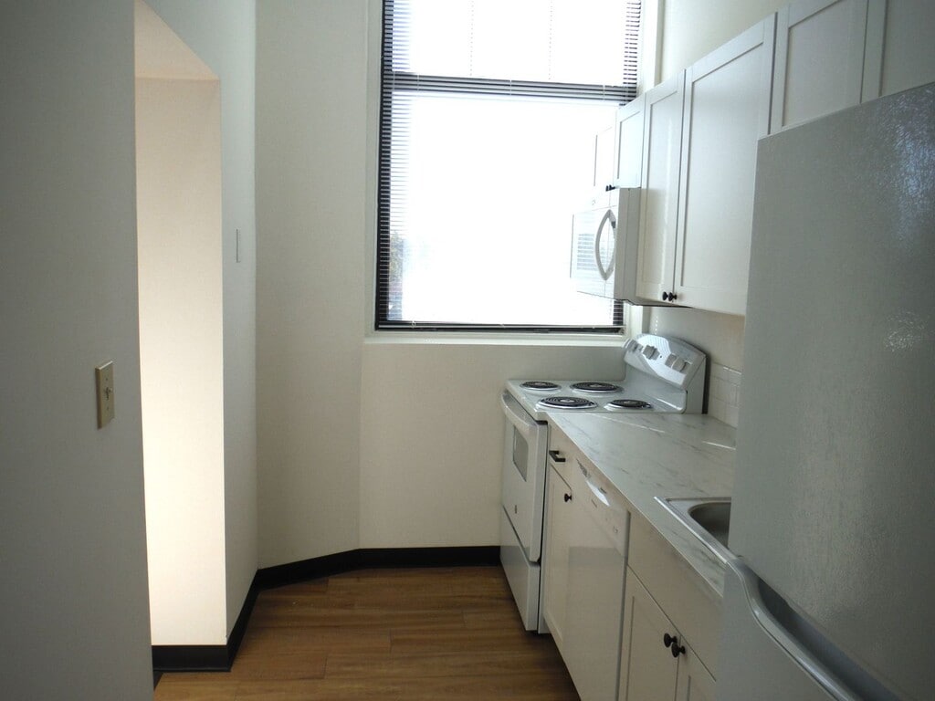 The spacious one-bedroom apartment is a quick walk to downtown. Features include hardwood floors, high ceilings, a bright living room, a medium-sized bedroom that accommodates a queen bed, an updated kitchen with dishwasher, and a full tiled bathroom. Multiple closets provide ample storage throughout the apartment. Rent is $1,375 per month and includes heat, trash removal, snow removal, and maintenance. Tenant is responsible for electricity, hot water, and internet/cable. On-site parking is available for $25 per month per vehicle. Up to 2 pets are allowed with completion of the pet registration. No smoking. Income verification, credit report, and background check required. Minimum monthly income of $3,825 is required for consideration.