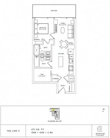 eCentral offers Studio to 2 Bedroom apartments starting from C$2,186 and having 500–1,002 sq ft. Here is the current pricing and availability: