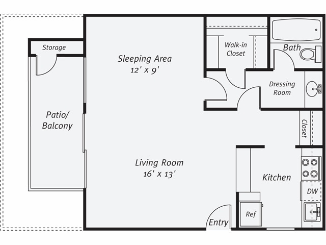 Studio, 1 Bath, 565 sq ftAvailable NowModel Gallery