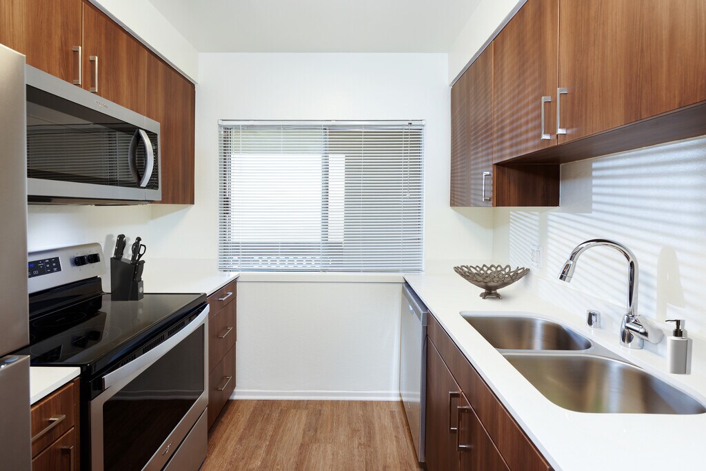 eaves Huntington Beach, located in Orange County and minutes fron the beach, offers one and two bedroom apartments that include stacked washers and dryers, fully equipped kitchens, a private balcony or patio. Select apartments feature newly renovated kitchens and baths with quartz countertops, new cabinetry, hard surface plank flooring, and Whirlpool stainless steel appliances. This pet friendly community also includes a fitness center, pool and spa, and barbecue and picnic areas.