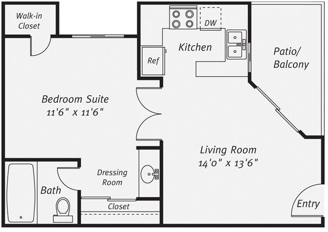 Apartment Model: A11 Bedroom, 1 Bath, 600 sq ftAvailable November 21, 2025![]()