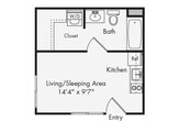 Studio, 1 Bath, 281 sq ftAvailable May 11Model Gallery