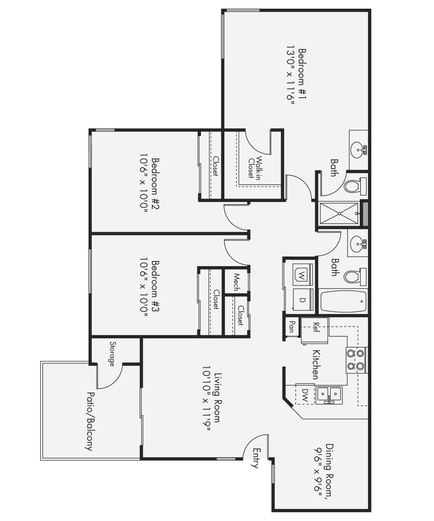 3 Beds, 2 Baths, 1099 sq ftAvailable NowModel Gallery