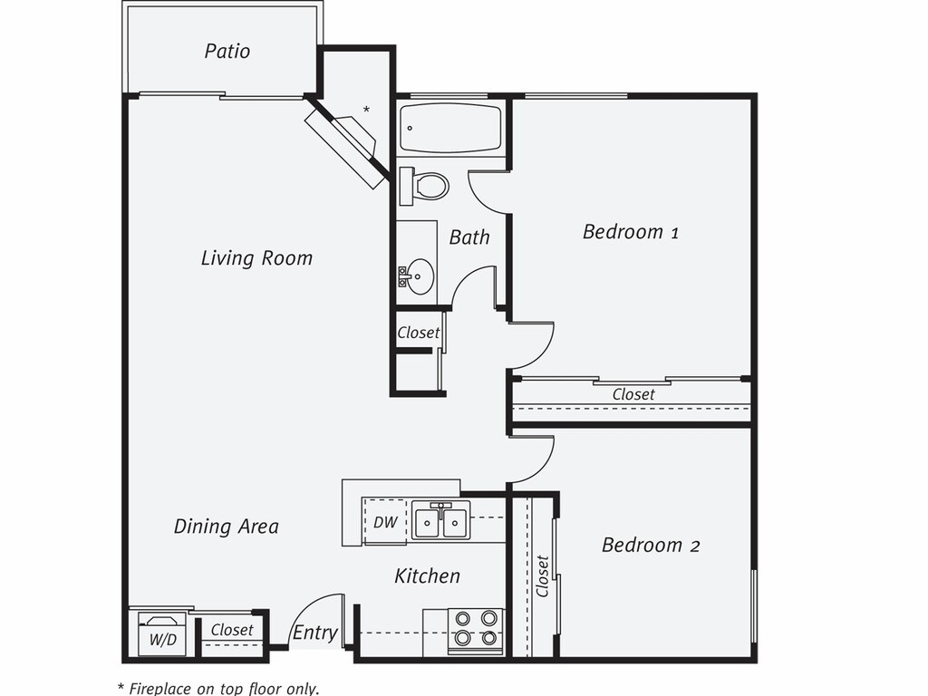 2 Beds, 1 Bath, 857 sq ftAvailable NowModel Gallery