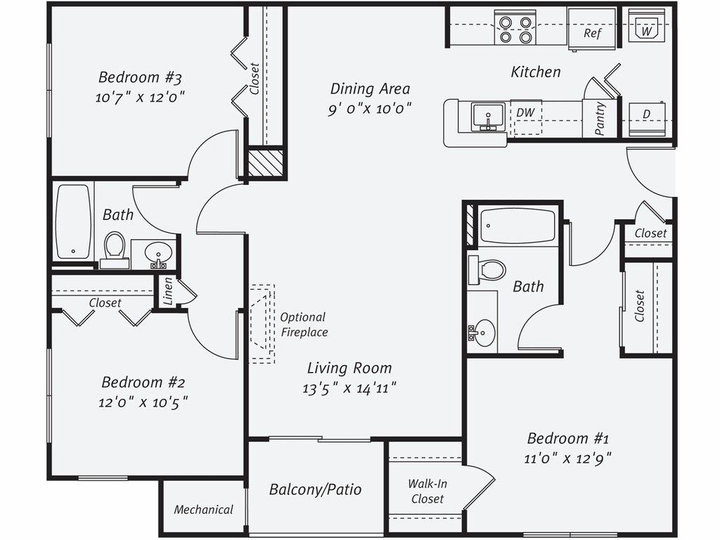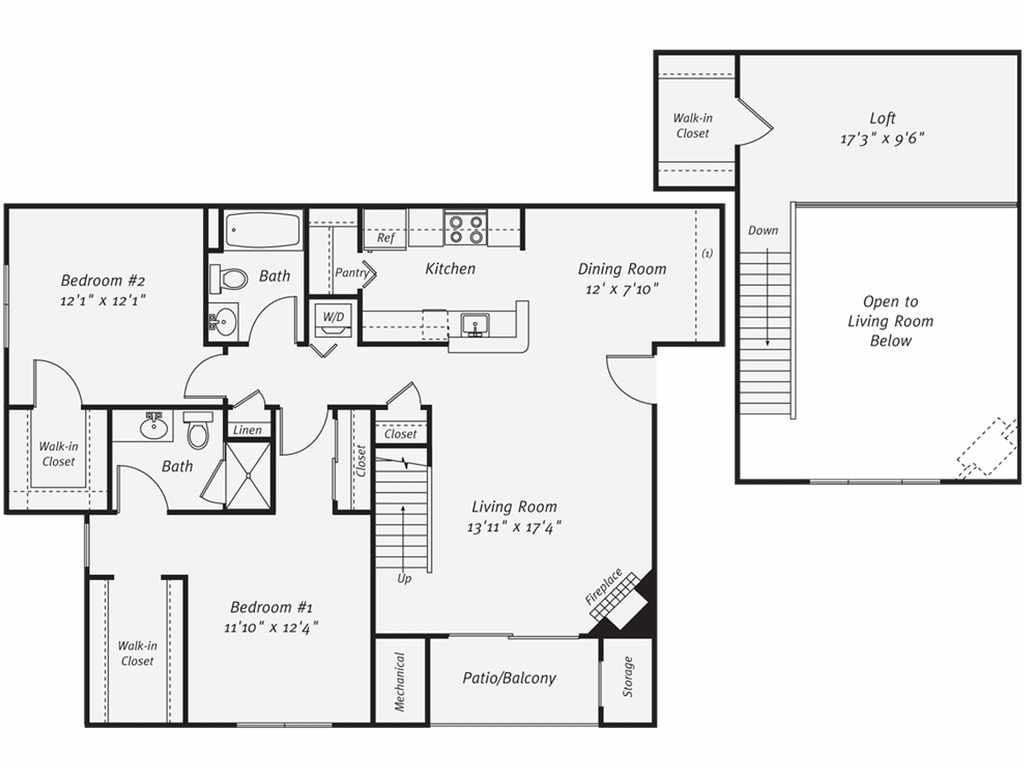 2 Beds, 2 Baths, 1395 sq ftAvailable Dec 11Largest 2 BedroomThis is the largest 2 Bedroom at this PropertyModel Gallery