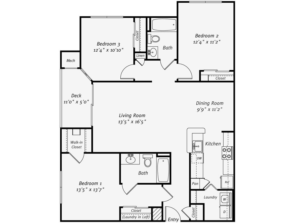 Apartment Model: BF3-2-3From $2,6902 Bedroom, 2 Bath, 1245 sq ftAvailable NowFloor plans are artist's rendering. All dimensions are approximate. Actual product and specifications may vary in dimension or detail. Not all features are available in every rental home. Please see a representative for details.