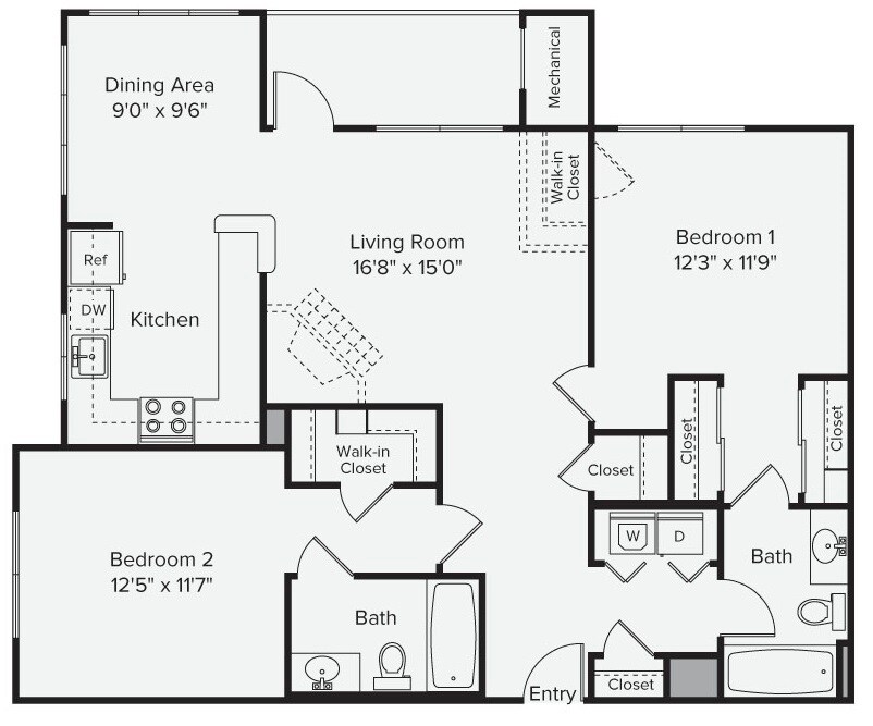 Apartment Model: BF2$2,8352 Bedroom, 2 Bath, 1174 sq ftAvailable NowFloor plans are artist's rendering. All dimensions are approximate. Actual product and specifications may vary in dimension or detail. Not all features are available in every rental home. Please see a representative for details.
