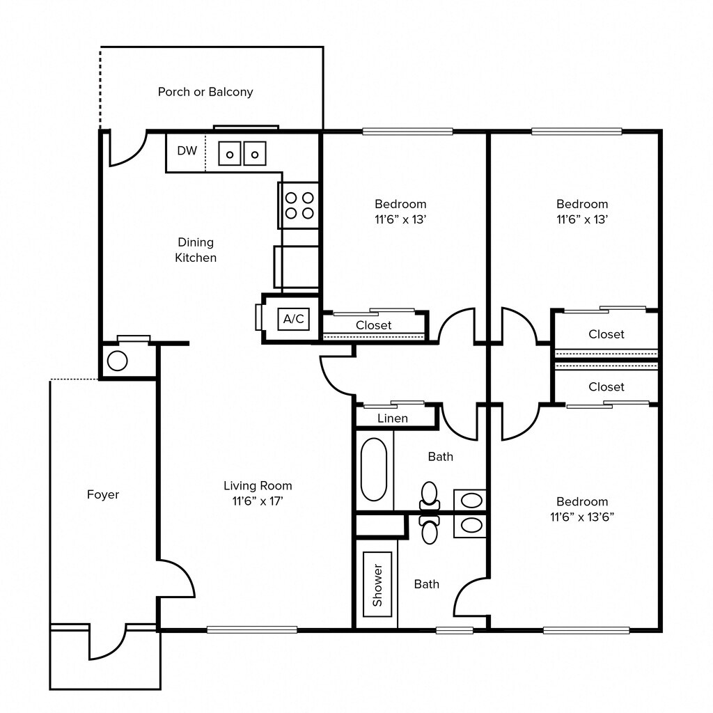 Apartment Model: 3X2W3 Bedroom, 2 Bath, 1223 sq ftUnavailableFloorplansPhotos![]()