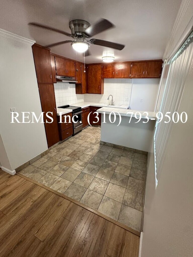 Renovated Upstairs 1 Bedroom 1 Bathroom located in a 30-unit building -Renovated Kitchen with quartz counters and refurbished cabinets -Remodeled Bathroom with newer bathtub, Tile enclosure, vanity/sink, and newer fixtures -Stove provided by owner -Laminate and tile flooring throughout, and carpet in the bedroom -Dual pane vinyl windows -Window blinds provided by owner -AC Unit -Coin operated laundry room onsite -Community pool -Gated/secured property -1 Assigned Parking Space -Owner pays for Water and Trash -Tenant required to provide and maintain renter's insurance