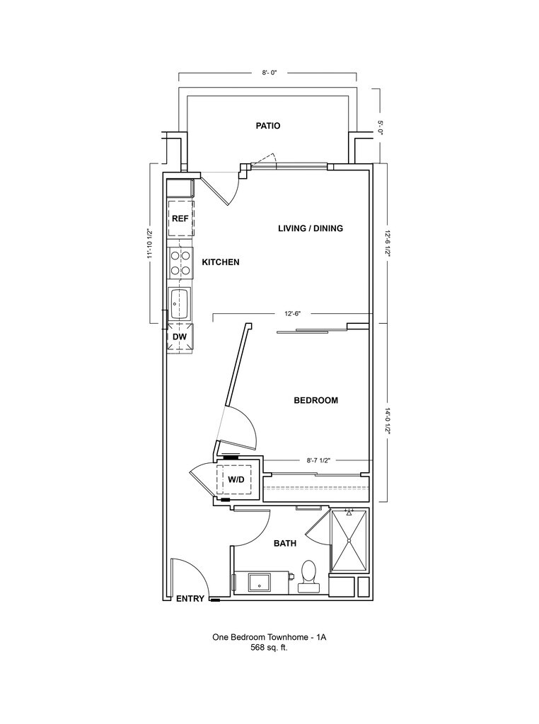 Apartment Unit: 127Apartment Model: A1 - Floorplan-Balcony/Patio (TH)$2,0721 Bedroom, 1 Bath, 568 sq ftAvailable Now1F-Floorplan