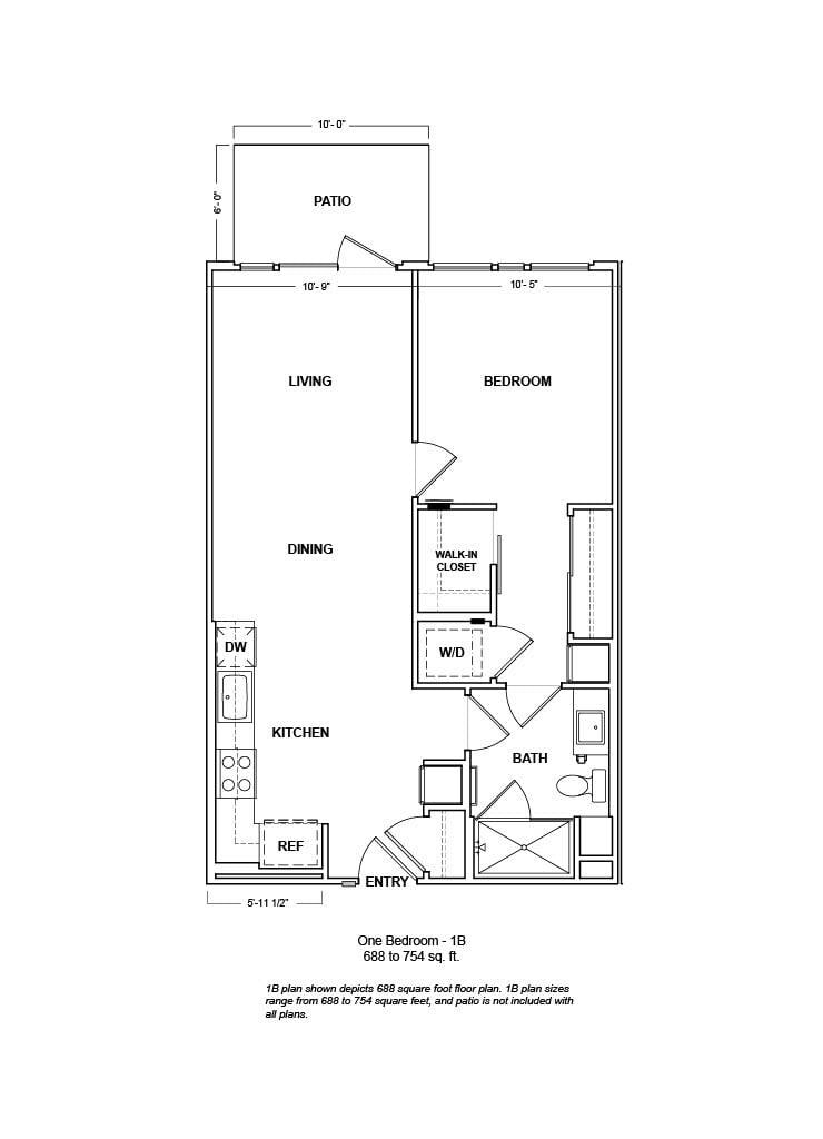 S2-Floorplan - Balcony/Patio - Floorplan 1 1 Bedroom