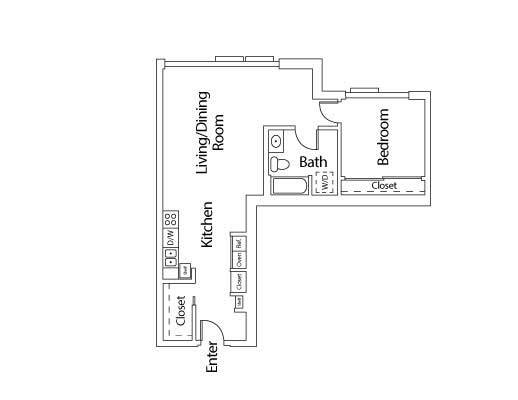 1x1 D - Floorplan 1 Apartment Unit: 202Apartment Model: 1x1 D$1,7101 Bedroom, 1 Bath, 660 sq ftAvailable NowApartment Unit: 402Apartment Model: 1x1 D$1,7101 Bedroom, 1 Bath, 660 sq ftAvailable Now1x1 F
