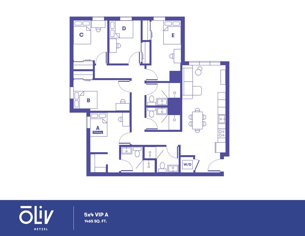 5x4 VIP - Floorplan 1 Apartment Unit: StandardApartment Model: 5x4 VIP$1,8155 Bedroom, 4 Bath, 1465 sq ftAvailable NowApartment Unit: StandardApartment Model: 5x4 VIP$1,8205 Bedroom, 4 Bath, 1465 sq ftAvailable August 20, 2026Floorplan 5x3