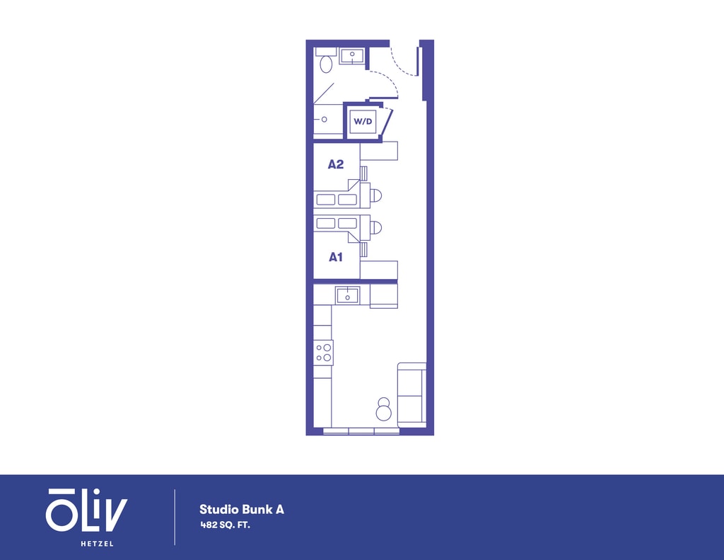 Studio Bunk - Floorplan 1 Apartment Unit: InteriorApartment Model: Studio Bunk$1,485Studio, 1 Bath, 482 sq ftAvailable August 20, 2026Studio Loft