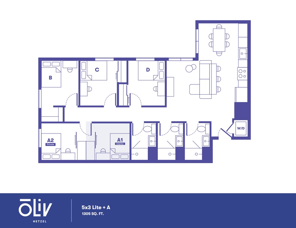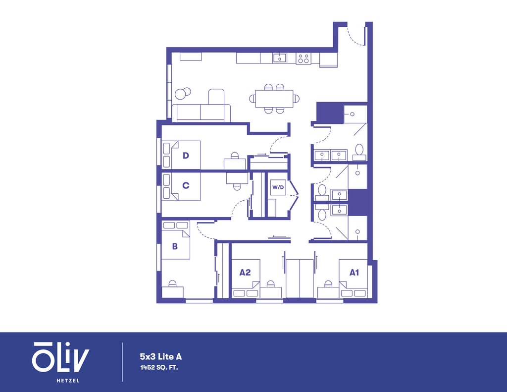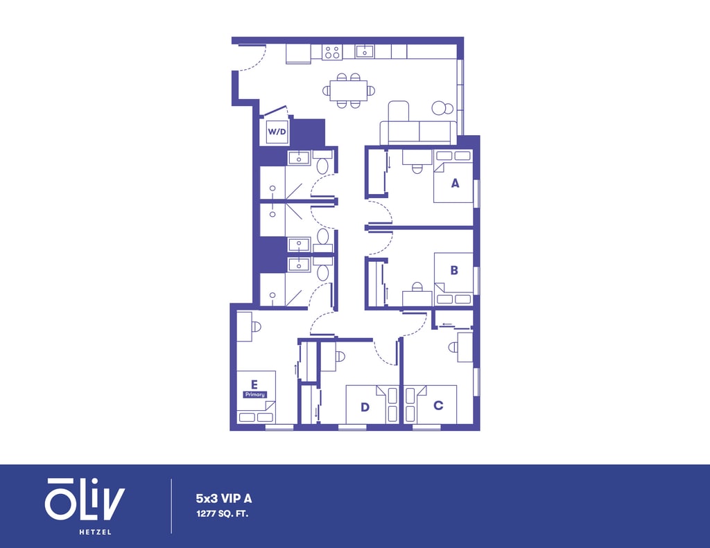 Apartment Model: 5x3 VIP$1,7995 Bedroom, 3 Bath, 1277-1452 sq ftAvailable August 20, 2026![]()