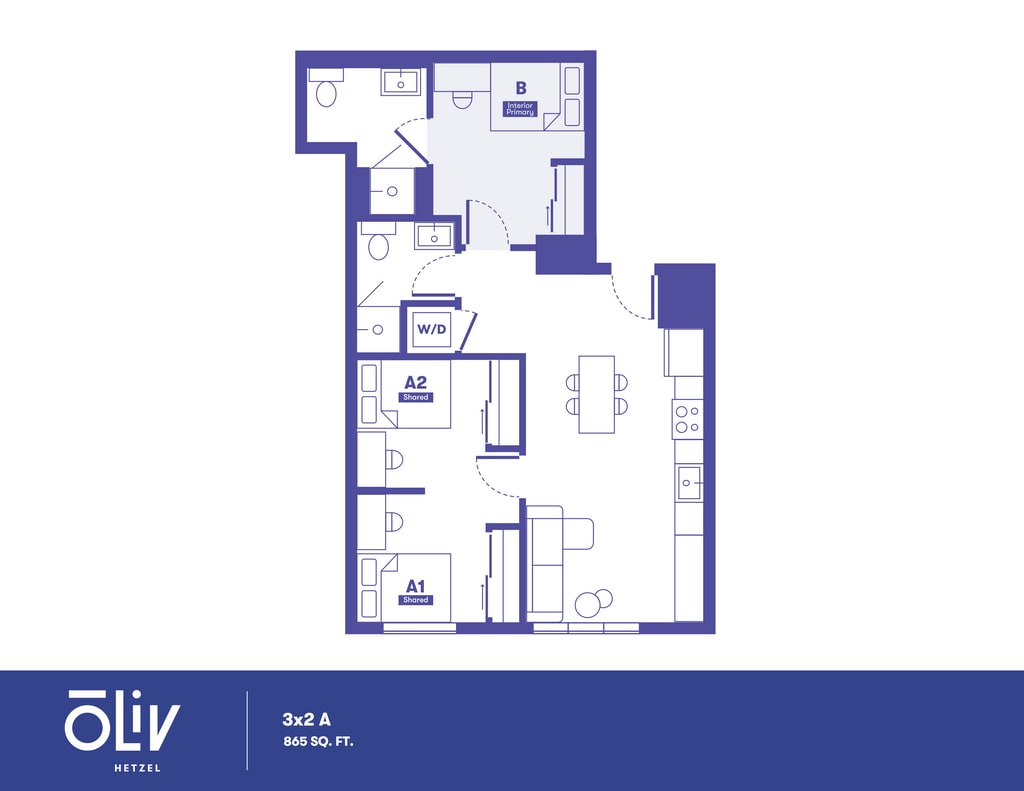 3x2 Shared - Floorplan 1 Apartment Unit: StandardApartment Model: 3x2 Shared$1,5753 Bedroom, 2 Bath, 865 sq ftAvailable August 20, 2026Model Gallery