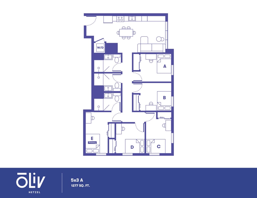 Apartment Model: 5x3$1,6995 Bedroom, 3 Bath, 1277-1354 sq ftAvailable August 20, 2026![]()